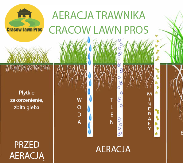 - Jest to bezpośrednie napowietrzanie trawnika, które przy okazji spulchnia podłoże i poprawia jego strukturę.
